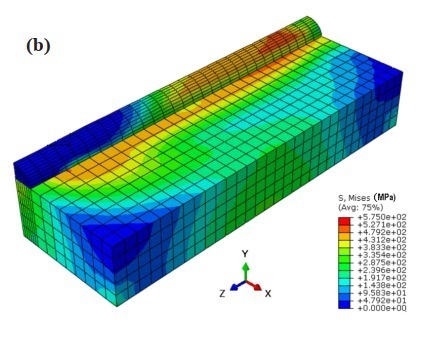 摘要:针对煤矿液压支架和海洋平台立柱的表面防护与修复的工程需求,采用 FeCrNiMo 马氏体不锈钢粉末在27SiMn 结构钢基体表面进行激光熔覆,以改善基体表面的耐磨、耐蚀综合性能。本文旨在研究激光能量密度对FeCrNiMo 熔覆层的截面特征及其开裂倾向的影响,采用热力耦合有限元模拟方法,基于双椭圆平面热源模型,计算分析了 FeCrNiMo 不锈钢粉在 27SiMn 钢基板表面的激光熔覆过程中,在不同的激光输入能量密度条件下,熔覆层的温度场和应力场的演变过程。并采用相同工艺参数进行激光熔覆实验,通过稀释率(熔覆层横截面中,母材熔化的面积与整个熔覆层横截面积的百分比)和熔宽情况的对比,以验证模拟结果的可靠性。进而研究激光能量密度对熔覆层稀释率、熔宽及其开裂倾向的影响规律。熔覆层的稀释率、熔宽均随输入能量密度的增加而增大,当输入功率达到 3000W,熔覆速度 6mm/s 时可获得较理想的稀释率和熔宽。而熔覆层边缘的应力随输入能量密度的增加而增大,其开裂倾向增大;而熔覆层中心线附近的应力随功率增大而有所降低。在激光熔覆过程中提高输入能量虽有利于增大熔宽,提高熔覆效率,但是同时增加了熔覆层的稀释率及其边缘开裂倾向。